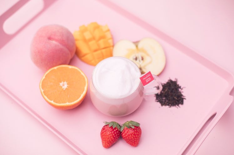 So, what the heck does a drink this color taste like? At first, my candy-loving heart was hoping there'd be a hint of white chocolate, but I was totally wrong. Apparently, in addition to jasmine tea, there's flavors of peach, apple, orange, and strawberry. TBH, it's a total go-to for anyone who'd rather start their morning with sweet-flavored tea than coffee. (I'm a coffee person — but I'd do this for the 'Gram.)