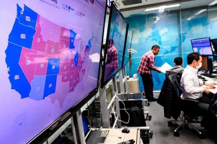 Following an exceedingly exhausting election night of highs, lows, and about a million flip flops in favor of both candidates, the uncertainty Nov. 3 continued well into Nov. 4 and the days beyond. By Nov. 4, several key battleground states had yet to be called in favor of either presidential candidate. According to the New York Times' map of presidential election results at the time, a whopping eight states' results were still being determined as of Nov. 4. Finally, on Saturday, Nov. 7, news networks called the election for former Vice President Joe Biden, including The New York Times, CNN, and The Associated Press.
