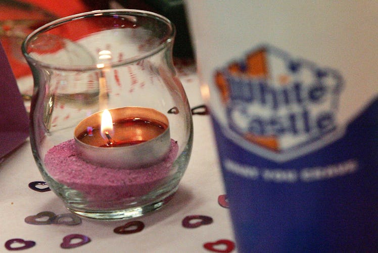 In case you're unaware, White Castle takes Valentine's Day very seriously. According to a press release emailed to Elite Daily, the company has spent the past 27 years offering its customers the chance to spend Valentine's Day dinner inside participating White Castle restaurants. Those who've already gone were able to experience romantic decor, hostess seating, table side service, and, of course, a dinner selection from White Castle's crave-worthy menu. This year, the company is offering the same service — but that's not the point I'm trying to make here.