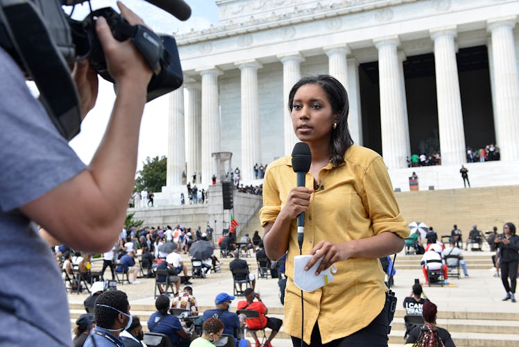 Scott tells Elite Daily she sometimes has to overcome very difficult obstacles, particularly as a Black journalist covering stories in predominantly white spaces. When reporting on President’s Day weekend last February at Trump’s Mar-a-Lago resort in Palm Beach, one of the attendees made an assumption about her role. “[They] asked me if I was a maid,” Scott recollects. Before she could state her position as a reporter for ABC News, “[they] asked me for more towels.” Scott is also extremely aware that many of the people she interacts with on a day-to-day basis have a hard time seeing her occupy space as a Black reporter. “Unfortunately, I’ve been called racial epithets at some political rallies,” says Scott. “I’ve [also] been told that I’m only asking a question, the ‘Black’ question, because I’m a Black reporter.”