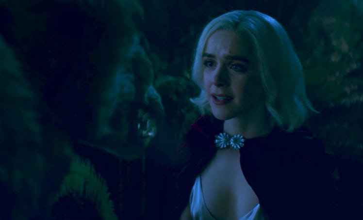 Spoiler alert: This post contains plot details from the first three episodes of Chilling Adventures of Sabrina Part 2. After her emotional breakup with Harvey in the first season finale, Sabrina moves on to begin dating her Academy of the Unseen Arts schoolmate Nick Scratch in the new episodes. Even though they have only just begun dating, Sabrina and Nick's relationship is almost immediately put to the test in Episode 3, when the festival of Lupercalia arrives. Nick explains the Lupercalia is kind of like a witch version of Valentine's Day, except it is less romantic and much more carnal. To celebrate, Nick and Sabrina will run around the woods at night with the rest of their classmates and engage in a big orgy. Yeah... this is definitely another level beyond just handing out heart-shaped cards...