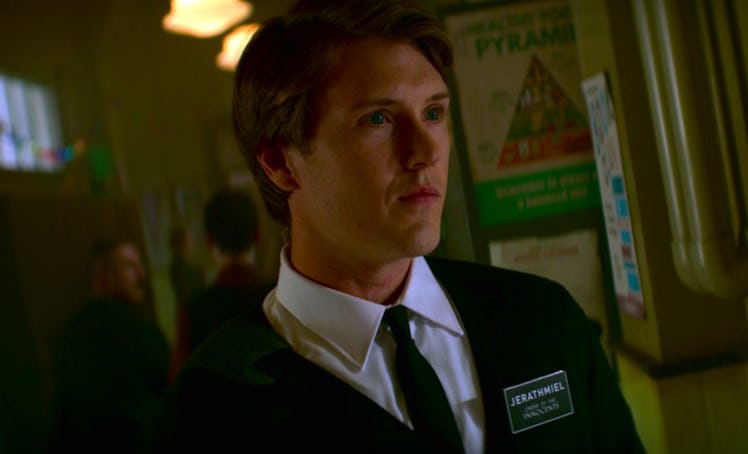 Spoiler alert: This post contains plot details from Chilling Adventures of Sabrina Part 2 Episode 6, "The Missionaries." Right from the start, it is clear that Jerathmiel is bad news — his introduction scene is him torturing and murdering Luke, after all. Jerathmiel wears a suit with a large nametag and is creepily upbeat as he tortures Luke. As the episode title makes clear, he is a dark and violent play on missionaries, claiming that he wants to convert all witches to his religion (although that conversion process is really just murder). As his nametag makes clear, Jerathmiel belongs to something called the Order of Innocents, and he is torturing Luke to find out where the Church of Night is located.
