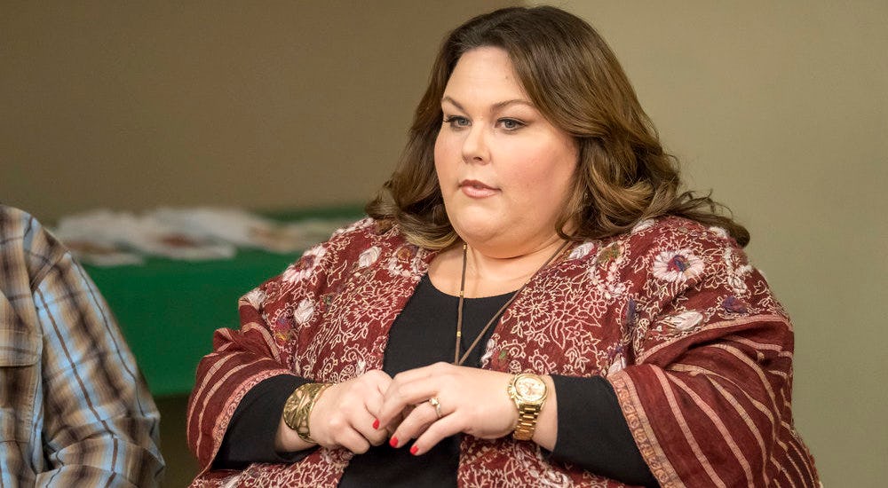 To be honest, I have been pretty upset and annoyed about how Kate has treated Madison in her few episodes before now. Madison is the skinny blonde woman who is in Kate's Overeaters Anonymous circle, and Kate has made it no secret that she doesn't believe Madison should be there. Despite not actually knowing Madison's personal struggles, Kate vocally writes off everything that Madison shares in the circle as frivolous. When Madison says that she managed to avoid eating the hors d'oeuvres at a party, Kate scoffs. In fact, it is Kate and Toby's shared ridicule of Madison's issues that first brings the couple together. I get that Kate probably had a hard time hearing a skinny woman complain about the same eating issues that she herself has, but it really did show how unsympathetic and close-minded Kate could be when she continued to loudly demean Madison in what was meant to be a safe space for her to share.