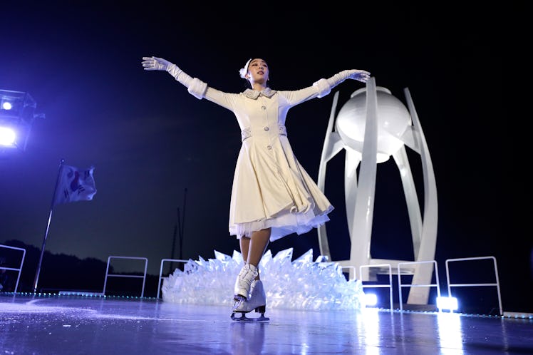 Yuna Kim is a South Korean ice skater, and even though the superstar won't compete in this year's Winter Games, according to NBC, she had the honor of lighting the Olympic cauldron at the opening ceremony. Yuna is no stranger to competition, though, and as soon as her fans saw her light the Olympic cauldron, they loved it. They were also immediately reminded of her immense talent and posted videos of her past performances, like this one at the 2010 Vancouver Winter Olympics.