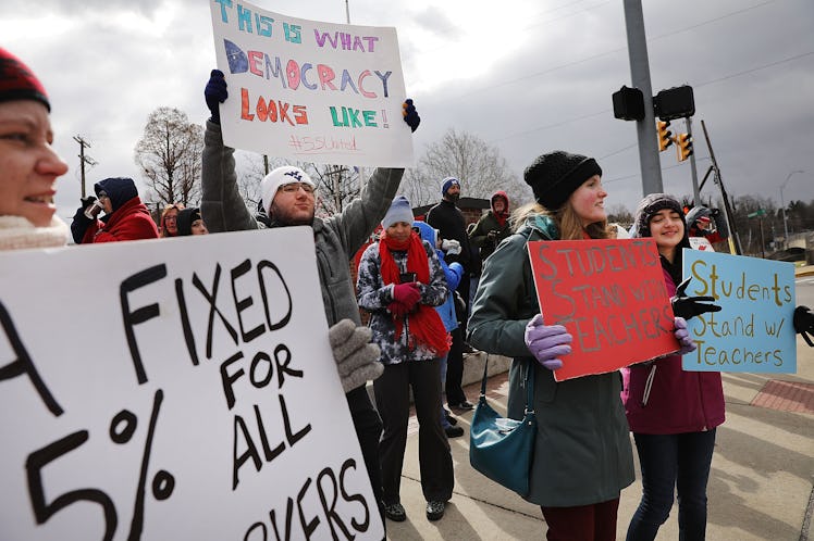 The striking teachers reportedly aren't happy about being out of their classrooms, but have felt forced to take a stand. Educators in the state are some of the lowest paid in the U.S., earning an average of $45,000 annually. To supplement their income, USA Today reports, many teachers have taken on side gigs, from working as restaurant servers to artists, in a state with nearly an 18 percent poverty rate. Changes to health insurance plans have also hit educators hard, with one telling The New York Times that she can't afford what amounts to a $300 bite out of her $1,300 bimonthly paycheck.