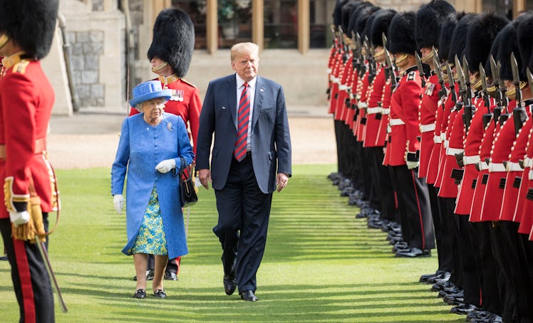 Despite Prince Charles and William's reported "snub," Trump and Queen Elizabeth's Friday the 13th meeting wasn't quite as unlucky as some might have assumed. The two powers, along with first lady Melania Trump, met at Windsor Castle in Windsor, U.K. to enjoy a lovely day on the grounds. Even though Trump's arrival didn't qualify as a "state" visit, his meeting with Queen Elizabeth represents a long-standing tradition between the two nations. According to Time, Queen Elizabeth has met with every U.S. president since 1951, excluding Lyndon B. Johnson.