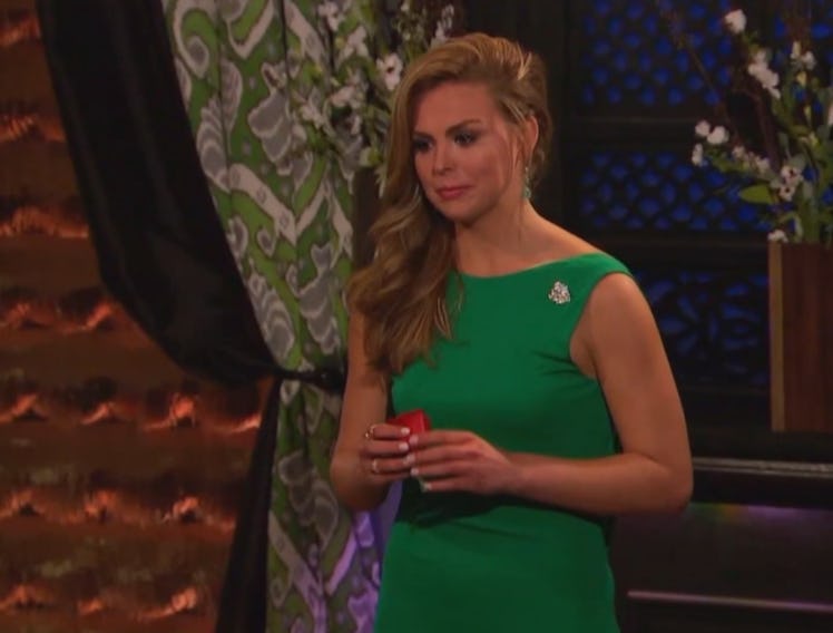 But first, Hannah prepared to say goodbye to one more guy, even though she was in love with all three of the remaining men. "This is my last Rose Ceremony and my hardest," Hannah told the cameras.