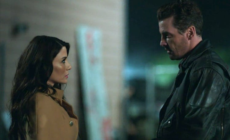 Riverdale just delivered one of Season 3's most explosive episodes yet, complete with multiple character deaths, a mysterious shooter, and the highly anticipated Gargoyle King reveal. But one of the most eyebrow-raising twists came at the very end, when an unexpected alliance took root. Spoiler alert: Stop reading now if you have not yet watched Riverdale Season 3 Episode 10, "The Stranger." The last moment of the episode showed F.P. Jones switching from biker gang leader to town sheriff. So, why is F.P. Jones Riverdale's sheriff now, and what are he and Hermione Lodge up to? Let's try to make some sense of this new mystery.