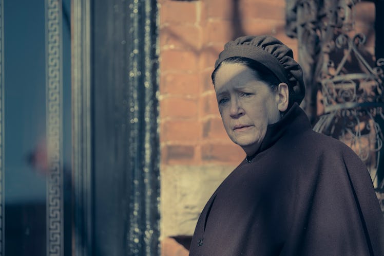 The Handmaid's Tale Season 2 ended on a sort of a cliffhanger, at least where one character was concerned. Aunt Lydia, the woman whose job it was to keep Gilead's Handmaids in line, was stabbed in the back by Emily and then pushed down the stairs for good measure. Fans were wondering if she would survive to Season 3, but showrunner Bruce Miller told viewers not to worry. Lydia would survive. But her behavior since her return has raised serious questions. Will Aunt Lydia die in The Handmaid's Tale Season 3? Warning: Spoilers for The Handmaid's Tale Season 3 follow.