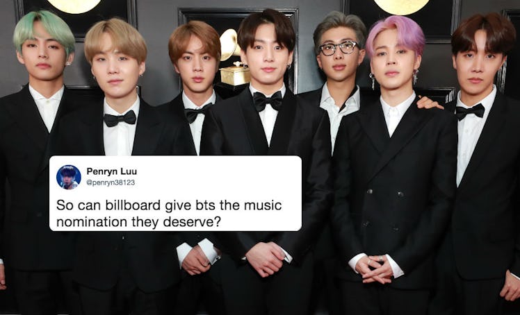 In 2017 and 2018, when BTS was nominated and won for Best Social Artist at the BBMAs, the boys' lack of nominations for their actual music was somewhat understandable. They were just as talented back then — and the ARMY just as passionate — but at the time, they'd yet to make their mark on the Billboard 200.