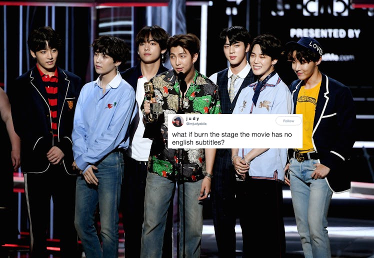 BTS fans everywhere are so excited about the trailer for the upcoming BTS movie titled Burn The Stage: The Movie. One huge part of the trailer, in particular, has fans who don't speak Korean worried, however, and leaving them with one burning question: Will Burn The Stage have English subtitles? The official trailer for the movie dropped late on Oct. 23, and some English-speaking fans were surprised it didn't come with English subtitles.