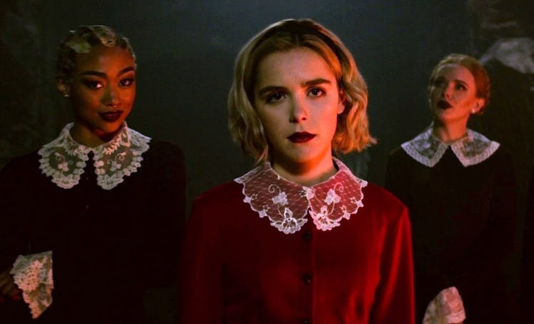 It definitely is not too far-fetched to believe that Chilling Adventures of Sabrina would introduce an antichrist character — Satan himself is a major character in the show, after all. Some sort of antichrist birthing ceremony would also explain a lot of the things that happened in the holiday special. Remember how Miss Wardwell tries praying to the Dark Lord at the beginning of the episode but receives no response? That could be because Satan was busy getting ready for his offspring to enter the world.