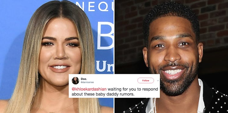 The internet is waiting with baited breath to see if Khloé Kardashian will respond to the reports that Tristan Thompson reportedly cheated on her. Videos of Thompson seemingly kissing another woman surfaced on Tuesday, April 10, when The Daily Mail published a video of Thompson at a club in NYC over the previous weekend. TMZ subsequently released a video of Thompson with three women in a hookah bar from October of 2017 that stoked more cheating rumors. The main question on fans' minds is: Will Khloé Kardashian respond to Tristan Thompson cheating reports? Each tweet you read about this shows a different opinion on the matter, but she doesn't need to respond at all. Elite Daily reached out to Kardashian and Thompson's teams for comments on the cheating reports, but did not hear back by the time of publication.