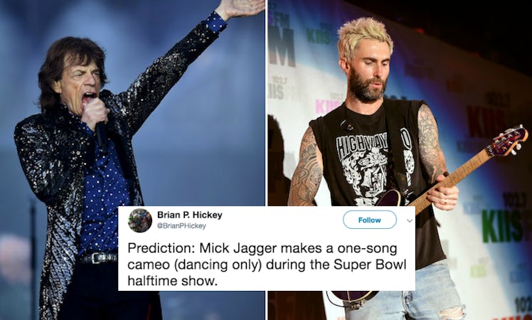 America is feverishly stocking up on Bud Light and hard seltzer in preparation for the 2019 Super Bowl. This year, the New England Patriots take on the Los Angeles Rams, and while sports fans might be busy painting their faces, music fans are carefully monitoring Twitter. That's because ever since it was confirmed Maroon 5 would be playing the Halftime Show, people are now wondering, "Hey, will Mick Jagger perform at the 2019 Super Bowl, too?" Obviously, this question began circulating thanks to Maroon 5's hit number "Moves Like Jagger," which is aptly named after the iconic Rolling Stone.