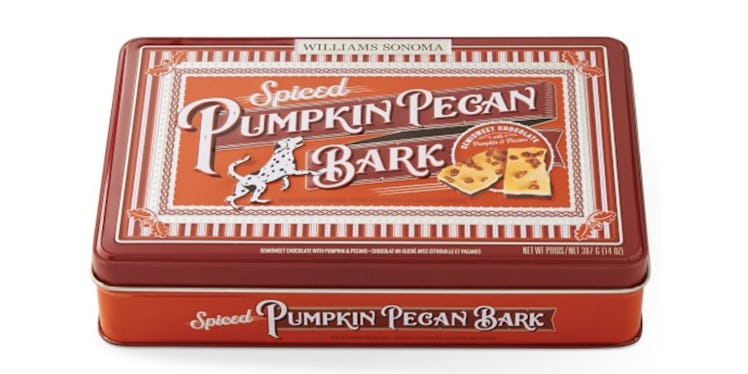 The delightfully tasty bark is sold in a 14-ounce metal tin at Williams-Sonoma stores nationwide. The delectable dessert is also available for purchase on the company's website. Right now, the Spiced Pumpkin Pecan Bark is on sale and comes with free shipping. If you move quickly, you can order a tin for yourself for the very affordable price of $19.99 directly from the Williams-Sonoma website. That's about $10 off the full price, so, all in all, it's not a bad deal for a limited edition snack like this.