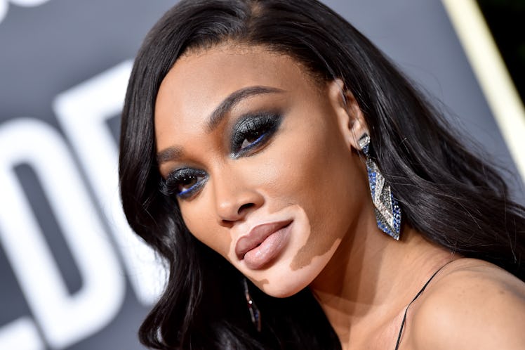If I had to trade closets with one model, Winnie Harlow would be closet-less in about .5 seconds. Sorry, girl! She's constantly turning out great looks at appearances, on Instagram, and of course, on red carpets, and if you haven't seen Winnie Harlow's Golden Globes dress yet, prepare to swoon. She looks hot AF, as per usual, and her slinky black gown's leg-revealing slit has me forgetting Angelina Jolie's ever existed. This look is one for my 2020 vision board, that's for sure.