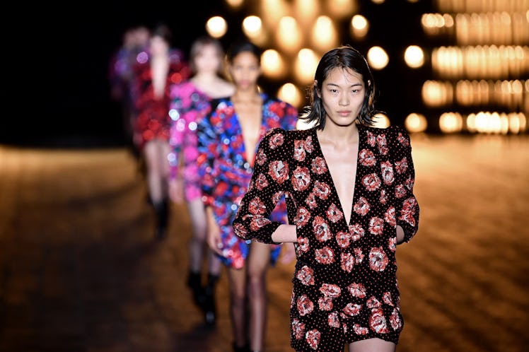 The resurrection of the '80s minidress isn't going anywhere anytime soon. The throwback style has been repeatedly championed for the past handful of seasons, with Saint Laurent and Tom Ford being two of its most enthusiastic supporters for winter. Think exaggerated shoulder pads; bright, blocky colors; and a healthy dose of shimmer.