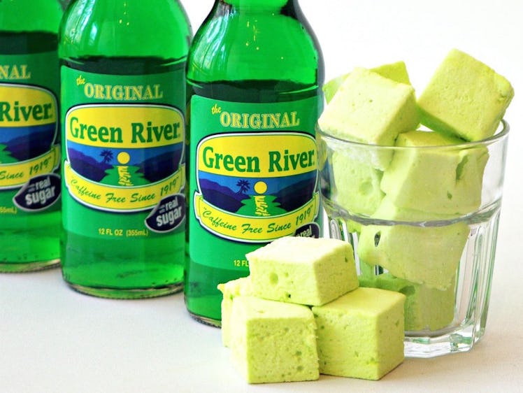 Chicago's green river (and more importantly, Green River soda) is what inspired XO Marshmallow's latest and greatest creation, known as the Green River Soda Marshmallows. XO's Green River Soda Marshmallow is bright green, made with actual Green River Soda, and it tastes like the citrusy lime pop you've probably come to know and love, per the XO Marshmallow website. A single pack of 12 goes for $8.95. I don't want to sound selfish, but I don't think I'll be sharing mine with any of you.