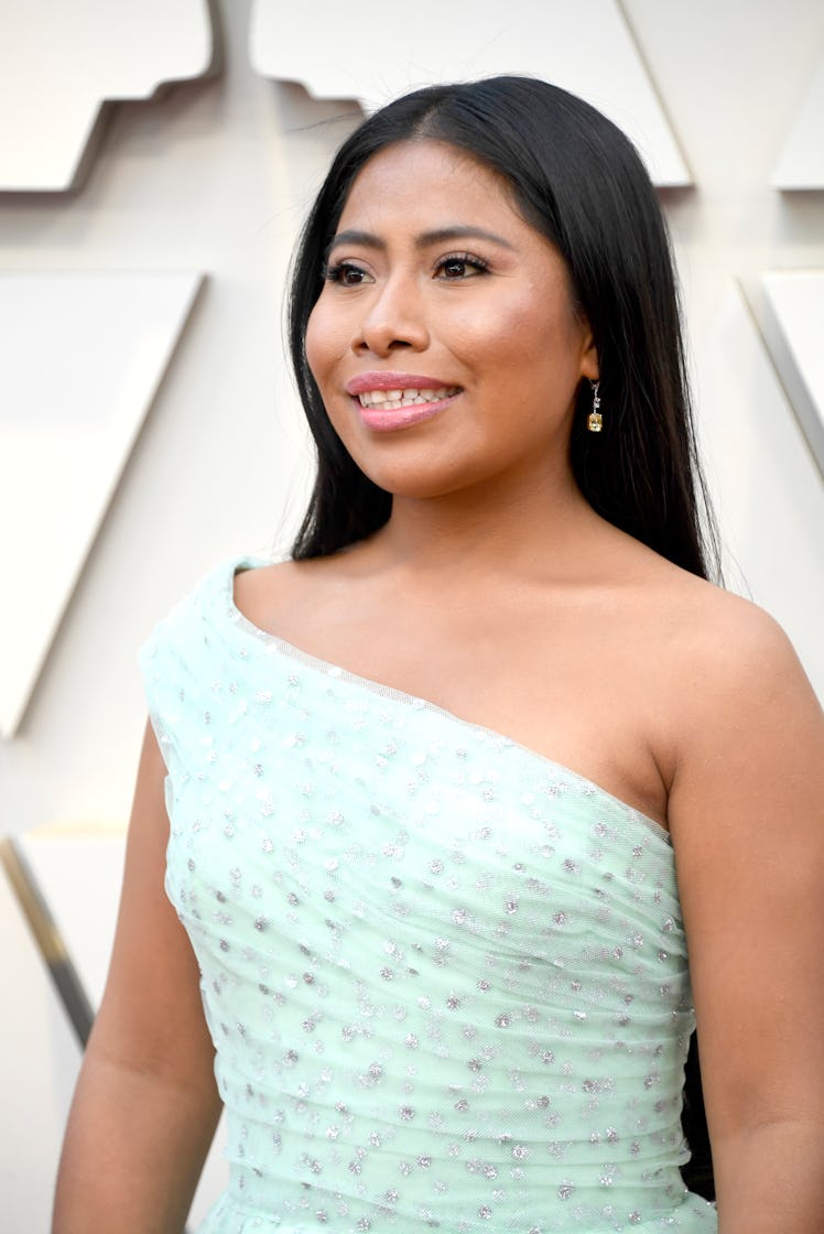 Normally, celebs who kill it on the red carpet during award season do so by rocking the shades and styles already deemed hot trends — however, one look in particular tonight seems to be starting a color trend all on its own. Yalitza Aparicio’s 2019 Oscars dress is the most dreamy sea foam green shade, and I’ll be damned if she didn’t just make this the "It" color of the season. Ladies and gentlemen, your spring 2019 color palette has officially been determined, and we have Aparicio’s lewk to thank for making pastels so damn chic.