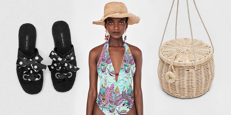 There are a ton of bathing suits in the sale, most of which are brightly patterned one pieces. My favorite, you ask? The Gondola Print Swimsuit ($29.99, originally $49.90, zara.com), which is basically a vacation in a swimsuit. The cut is flattering, the print is dreamy, and as the picture above shows, it looks great with that Multicolored Braided Bucket Bag I already decided you're buying. Thank me later!
