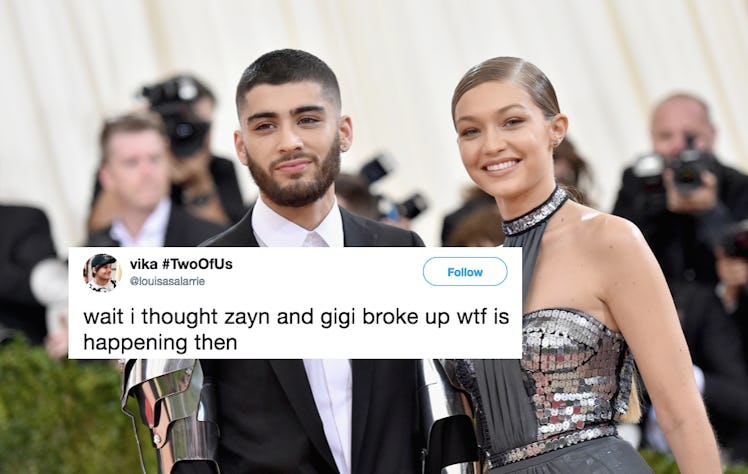 Zayn Malik's latest social media activity is raising questions about his current relationship status with on-again, off-again girlfriend Gigi Hadid. It's hard to keep track of these two, but Zayn Malik's tweet about loving Gigi Hadid is causing a full-blown Twitter meltdown in light of recent reports that the couple reportedly called it quits back in January. Is the "Dusk Till Dawn" crooner trying to win Hadid back or have they reconciled and are already back together? Fans are sharing their own theories on what is going on with Zigi right now. Elite Daily reached out to both Hadid and Malik's reps for comment on their current relationship status and the recent tweet, but did not hear back by the time of publication.