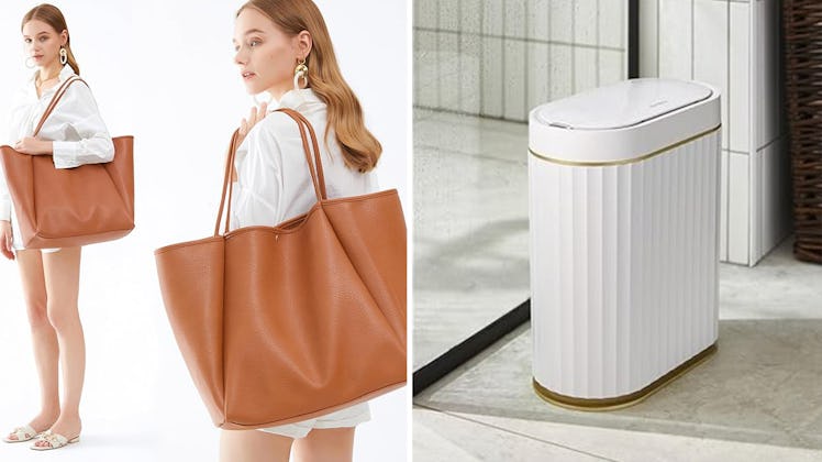 This vegan leather tote looks so luxe, you’d never know it wasn’t designer. Measuring 15 by 15 inches, it has a spacious capacity and a simple snap closure. Inside, you’ll find a zippered side pocket, which is perfect for securing valuables like your phone and wallet. The chunky pleats in front provide a touch of visual interest, too.