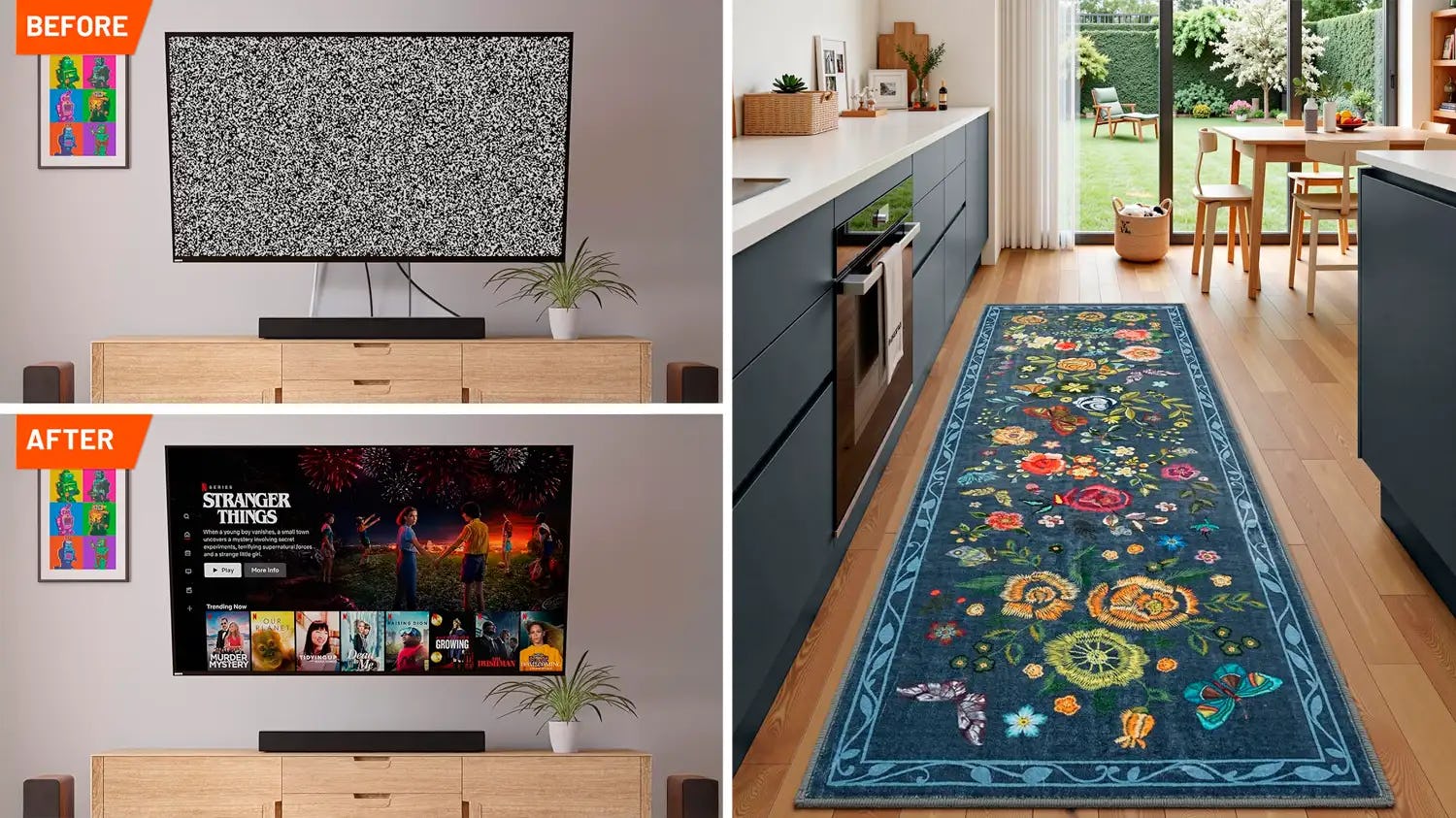 Narrow hallways and in-between spaces are easy to overlook, but this floral runner gives them a little bit of extra personality. The vintage-style runner rug introduces color and pattern without overwhelming the room, courtesy of its low-profile, easy-to-layer design. It is super soft underfoot and stays in place with its nonslip backing.