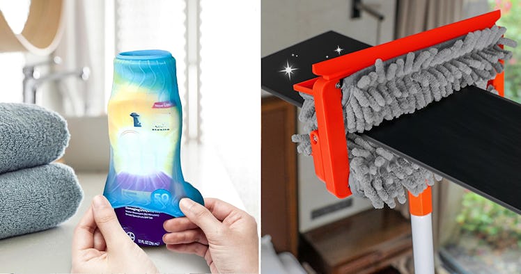 Getting the dust off the blades of a ceiling fan can be such a challenge that it is tempting to never look up. But this ceiling fan cleaner is ready for the challenge. The two-sided microfiber mop does both sides of the blade at once, and it comes with an extendable pole so you can reach the blades without getting out a ladder. The blades flip down, too, turning it into an effective floor and wall cleaning tool. It comes with two fluffy mop heads and two flat microfiber ones.