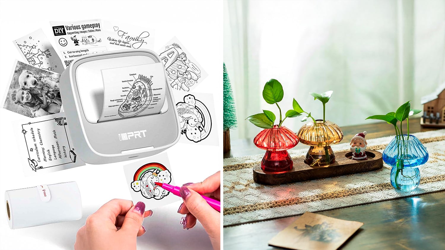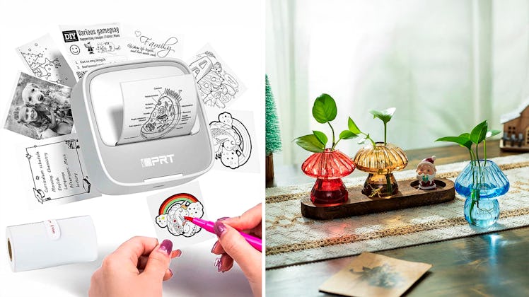 Any plant parent would adore these mushroom planters. Made of clear glass, they allow you to observe the growth of cuttings, succulents, and flowers. Their flat wooden base keeps them securely in place, and their openings are up to an inch in diameter, so they're perfect for smaller plants. They arrive in a set of three, but you can also grab them in a five-pack.