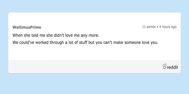 In fact, none of it had to do with that. All of it was just talking about the moments Reddit users knew they no longer loved their significant others.
