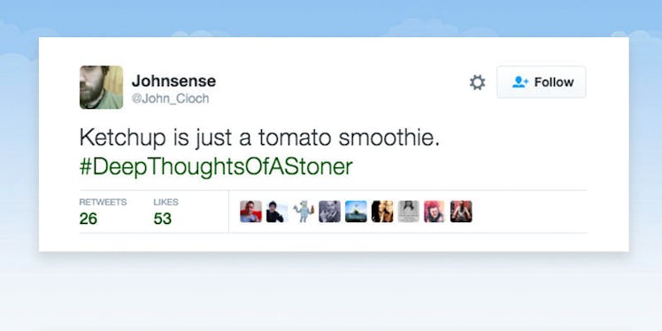 Like many, though, I am at work today and not (I assume) surrounded by hilarious stoners. In times like these, we must turn to Twitter to get our fix of high-wisdom on this holiday.