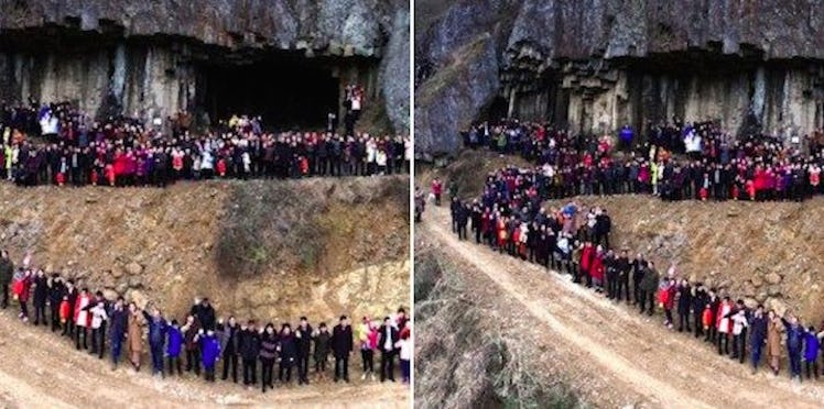 The photos show a relatively orderly scene for the 500-person family reunion. Ren Tuanjie set up the picture himself, shouting instructions through a portable speaker.