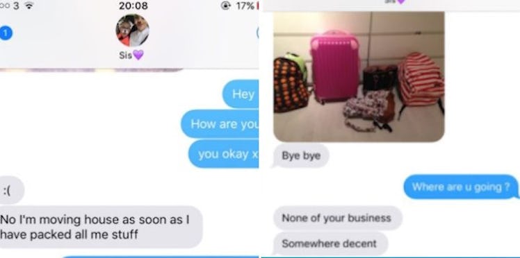 To convince Nicole she was definitely leaving, she then texted a passive aggressive picture of FIVE DIFFERENT PACKED BAGS.