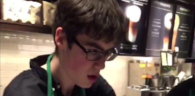 The video, filmed inside a Toronto-area Starbucks, shows an autistic barista named Sam dancing as he works. In the video's description on YouTube, Carly explains,