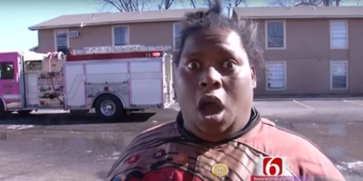 The only thing more FIRE than this autotune remix of the “It's Poppin'” lady is the building she escaped from. That building is probably completely fire by now.