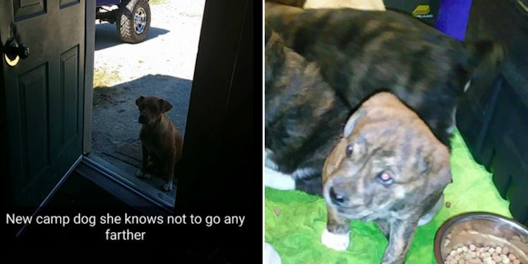 After giving the dog, who appeared malnourished and dehydrated, some water, they followed the dog to a spot in the woods that she seemed to be guarding.