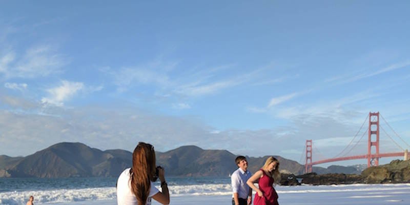 But one Californian couple recently got a little more than they bargained for while taking part in a pregnancy photo shoot along the ocean at Baker Beach, San Francisco.