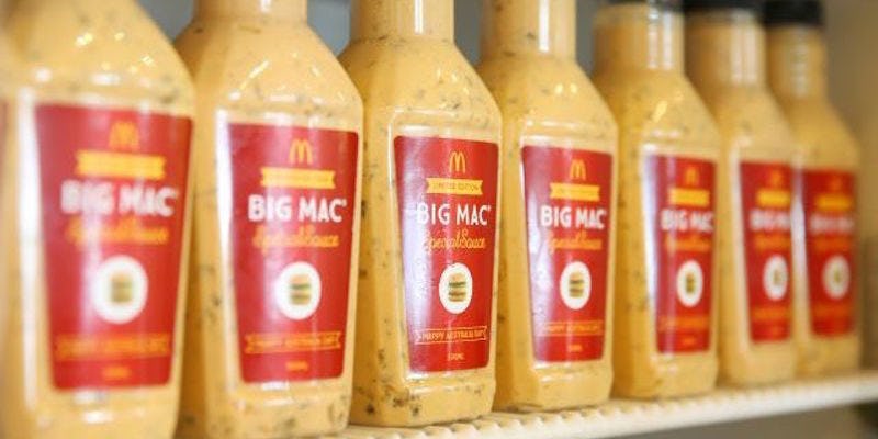 Citations: McDonald's Big Mac Sauce Is Finally Being Sold By The Bottle (FOODBEAST), McDonald's Australia Selling Big Mac Sauce by the Bottle (Brand Eating)