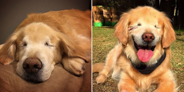 The 13-year-old Golden Retriever was born with dwarfism and without eyes. So, he was mistreated when he was younger for his developmental challenges.