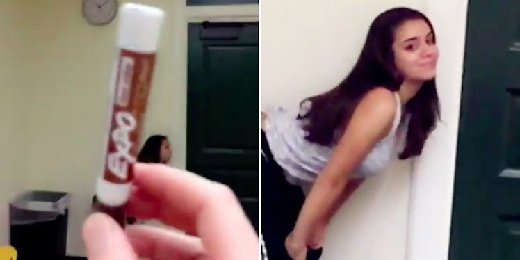 The 18-year-old dancer bends next to a trash can while a friend tosses a pen toward her booty. Then, as if guided by the hand of God himself, she arches her back to hit the pen into the can with her butt.