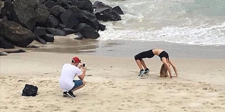 But when it comes to the women who flex some seriously strong Instagram game, this saying goes more along the lines of, "Behind every great Instagram is a boyfriend who's willing to stand on the edge of a cliff and take 400 photos of his girlfriend doing the same damn poses over and over."
