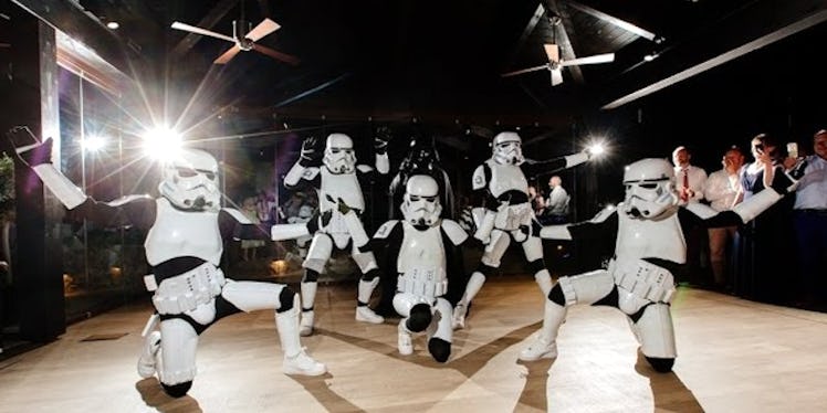 After grooving to hit songs like "Gangnam Style" and "Watch Me," the smooth stormtroopers wrapped up their epic performance with "Single Ladies" by Beyoncé. If that's not wedding-appropriate, I'm not really sure what is.