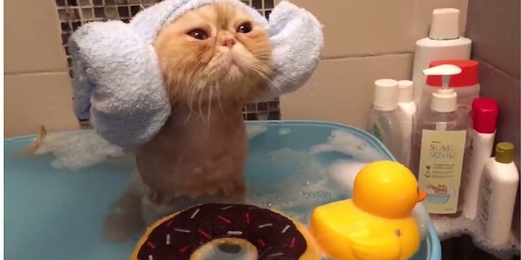 We all know what Mimi is going through. We all know what it's like to need to forget our troubles, enjoy the warm, soapy suds and zone out with a tiny doughnut floaty. We are all this cat.