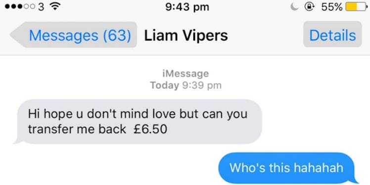 A few weeks passed, but when it became apparent Liam probably wasn't going to get anywhere with Abby, he billed her for the drink. I repeat: the drink. Not drinks. One singular drink, at the cost of £6.50, aka $8.60.