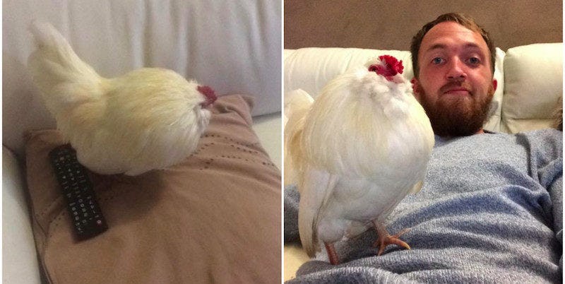 For the record, they would have been totally cool with the chicken popping in to say "hi," but he overstayed his welcome (by four hours) and crossed the line by having sex with Mrs. Leigh's slipper after getting in bed with them.
