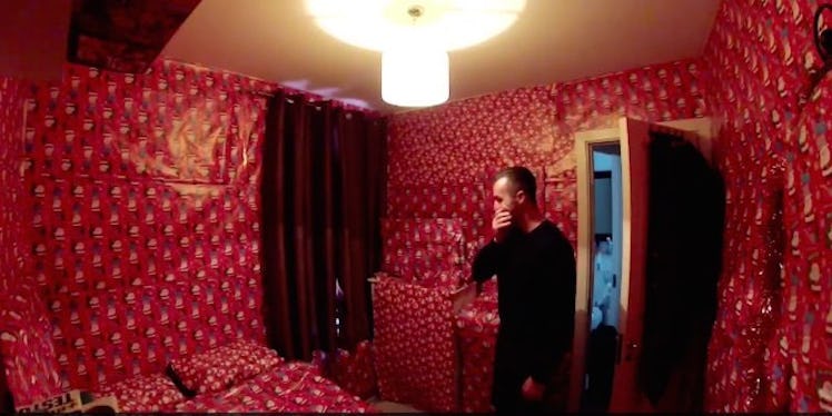 While Neary was in Sydney, French took the liberty of gift-wrapping his entire bedroom in bright red wrapping paper. He went all out; the only things left uncovered were the ceiling, floor, curtains, and door. The rest? One massive Christmas horror.