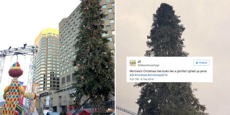 Montreal's christmas tree looks like it has an erectile disfunction @JdeMontreal #MontrealSapin pic.twitter.com/cs8Vh3aeQQ — Pacifist Duck (@Pacifist_Duck) December 6, 2016