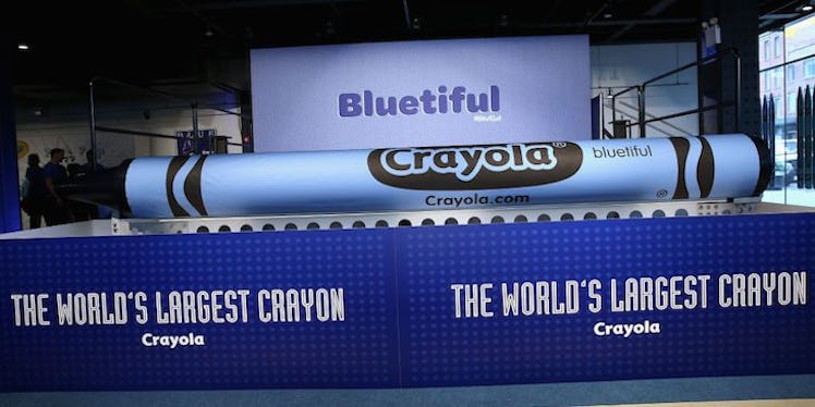 According to Crayola's press release, 40 percent of the votes went to Bluetiful, and it will be the nineteenth active blue color in your 24-pack. Not only did the company reveal the big name news today, but the company also created the world's largest crayon to celebrate. The towering crayon was unveiled today in the new Bluetiful color, weighing 1,352 pounds and measuring 15.6 feet long. That was enough to give Crayola its first Guinness World Records title for "Largest Crayon." The celebration continued as globally recognized dancer Leon “Kida” Burns performed upbeat and creative dance numbers. Bluetiful seriously knows how to party.