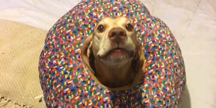 In fact, Riley loved the doughnut pillow so damn much that he refused to give it back. Brielle noted, "I put this donut pillow on my dog 20 minutes ago and he loves it and won't let me take it off."