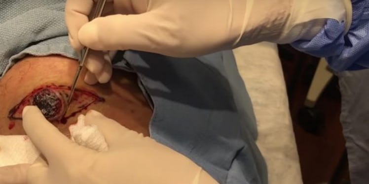 The man's cyst was previously "biopsied" but not removed by another doctor, who let the wound heal on its own.